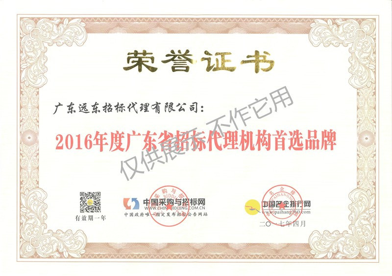 2016年度廣東省招標(biāo)代理機構(gòu)首選品牌
