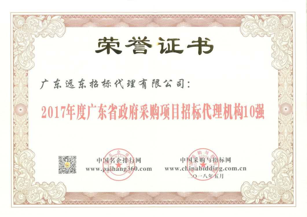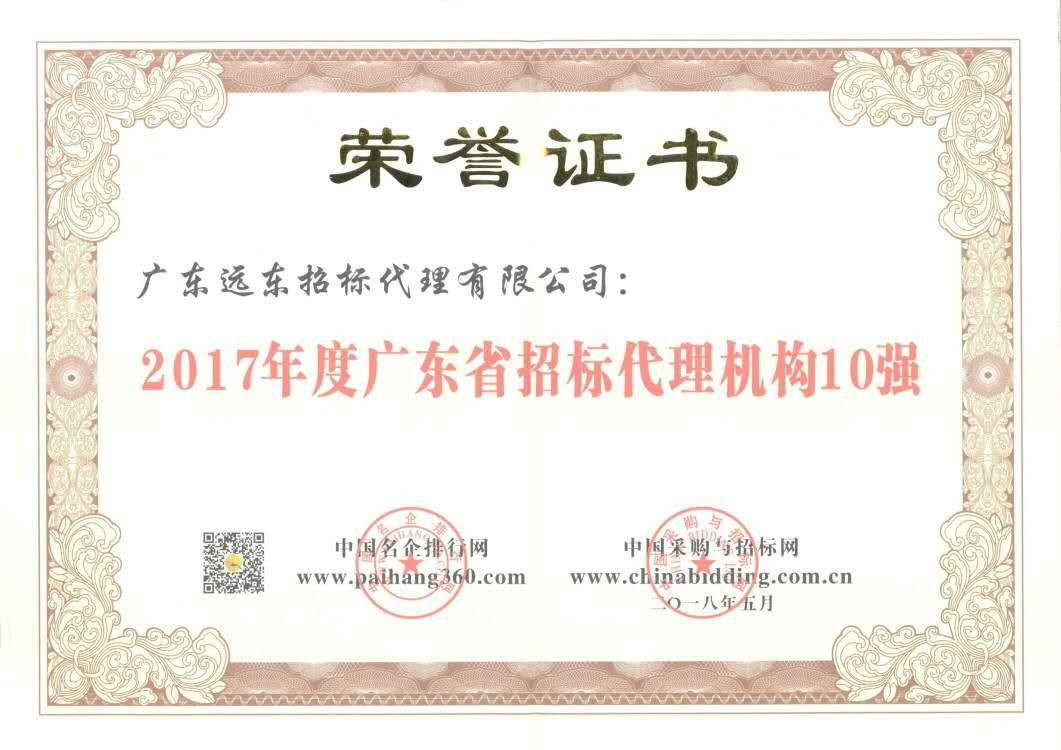 2017年廣東省政府采購項目招標(biāo)代理機構(gòu)10強