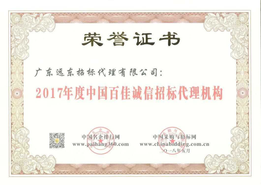 2017年中國百佳誠信招標(biāo)代理機構(gòu)